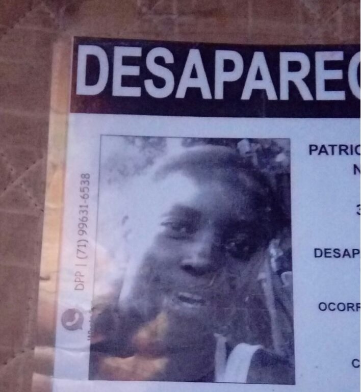 Patrícia Santana Novaes, 32 anos está desaparecida desde o dia 17 de setembro de 2017. Ela foi vista pela última vez em companhia da mãe, a senhora Alice Santana Novaes, que também está desaparecida.