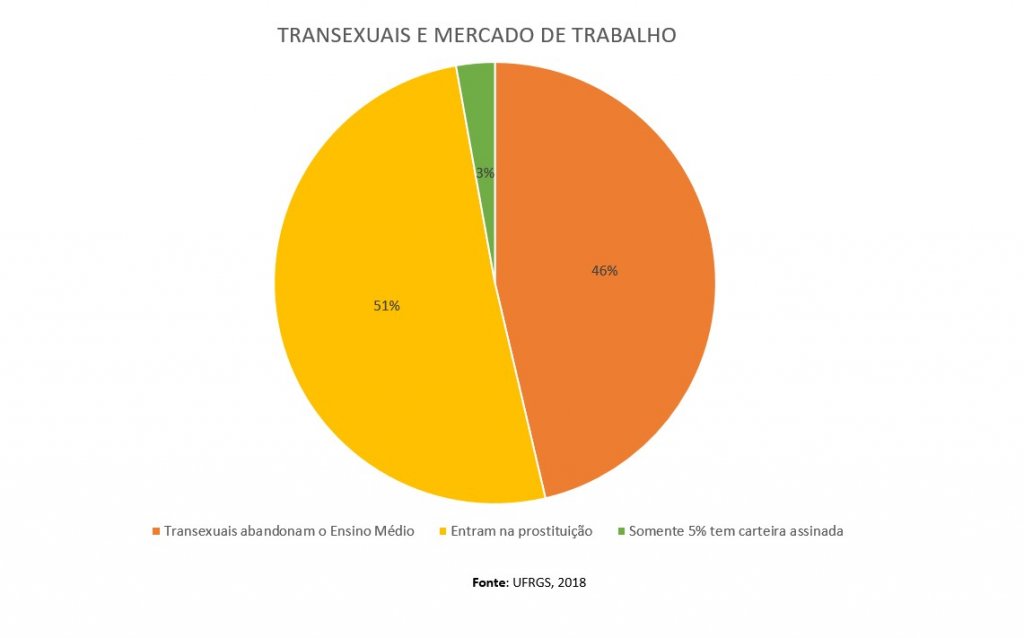 A expectativa de vida dessa parcela da sociedade é baixa. Dados da União Nacional LGBT apontam que o tempo médio de vida de uma pessoa trans no Brasil é de apenas 35 anos, enquanto a expectativa de vida da população em geral é de 75,5 anos, de acordo com informações divulgadas em dezembro de 2016 pelo Instituto Brasileiro de Geografia e Estatística (IBGE). Para sobreviver, muitas começam a se prostituir, pondo a vida em risco.